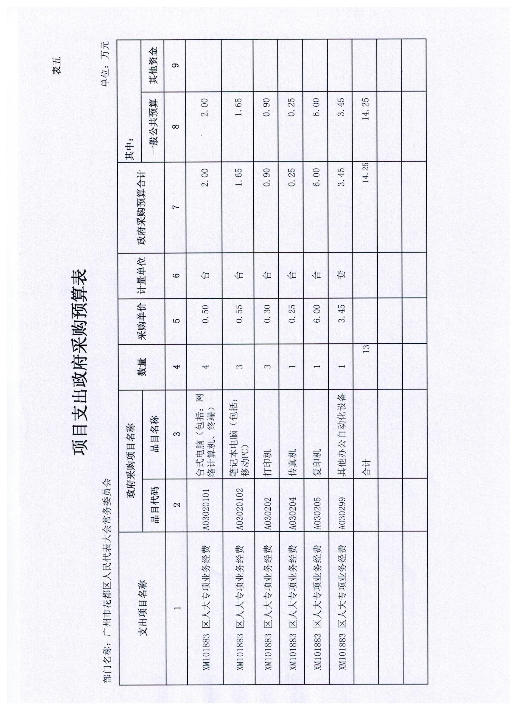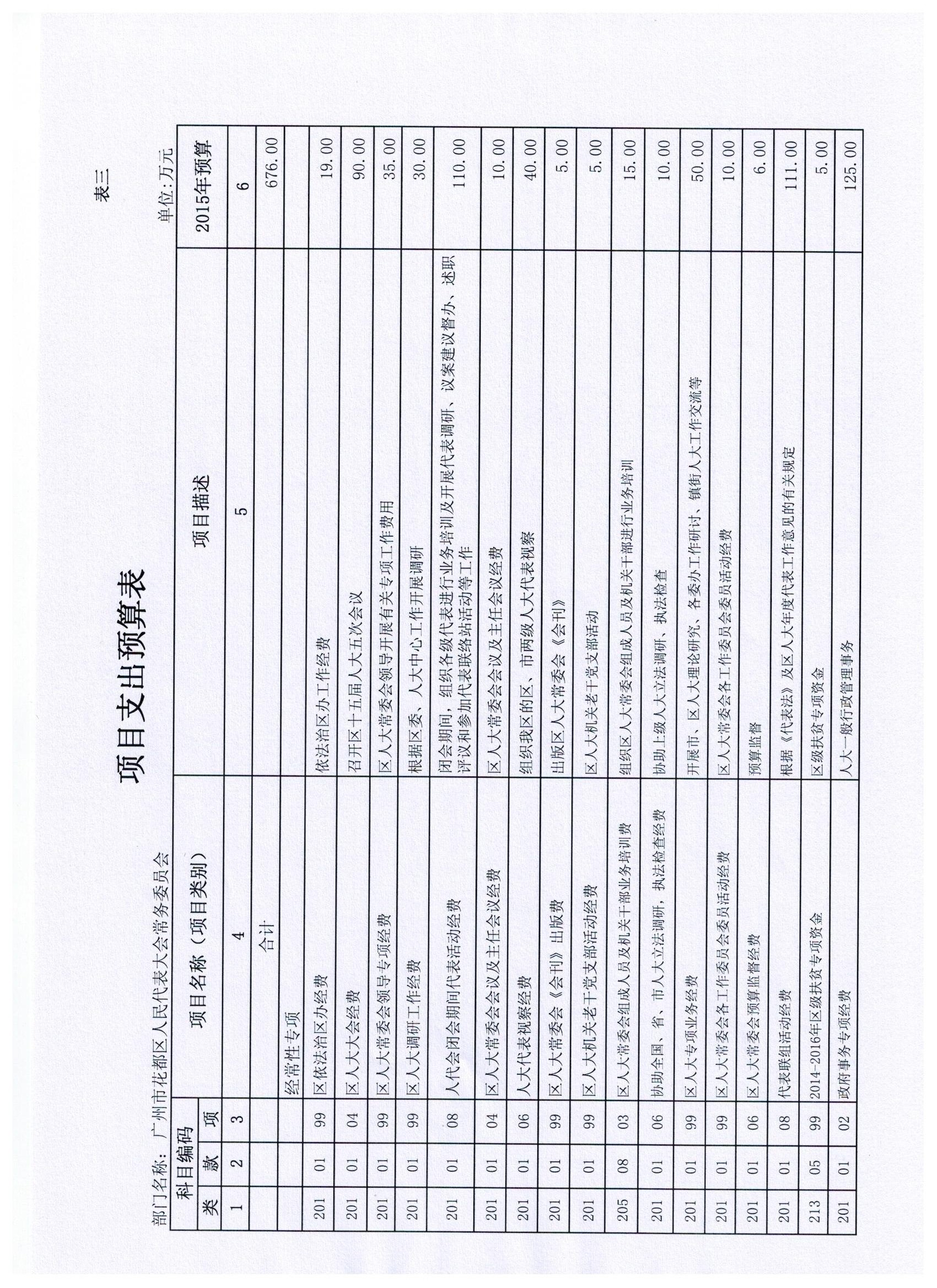 花都區人大常委會2015年部門預算