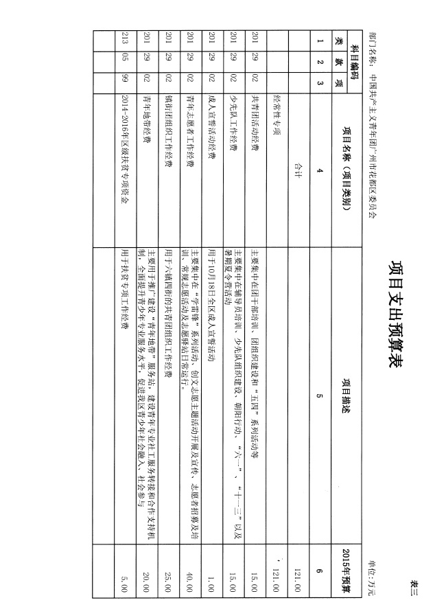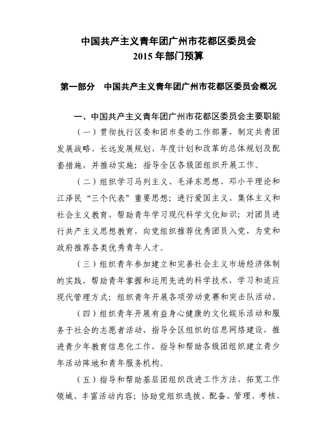 中國共產(chǎn)主義青年團廣州市花都區(qū)委員會2015年部門預(yù)算