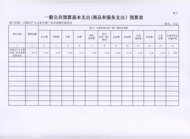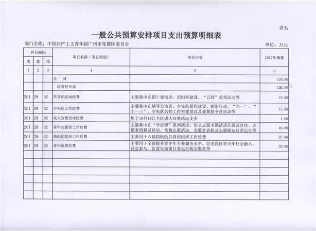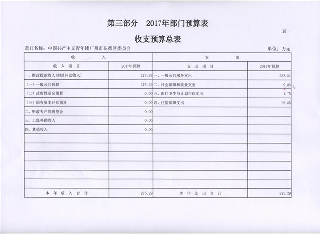 中國共產(chǎn)主義青年團(tuán)廣州市花都區(qū)委員會(huì)2017年部門預(yù)算