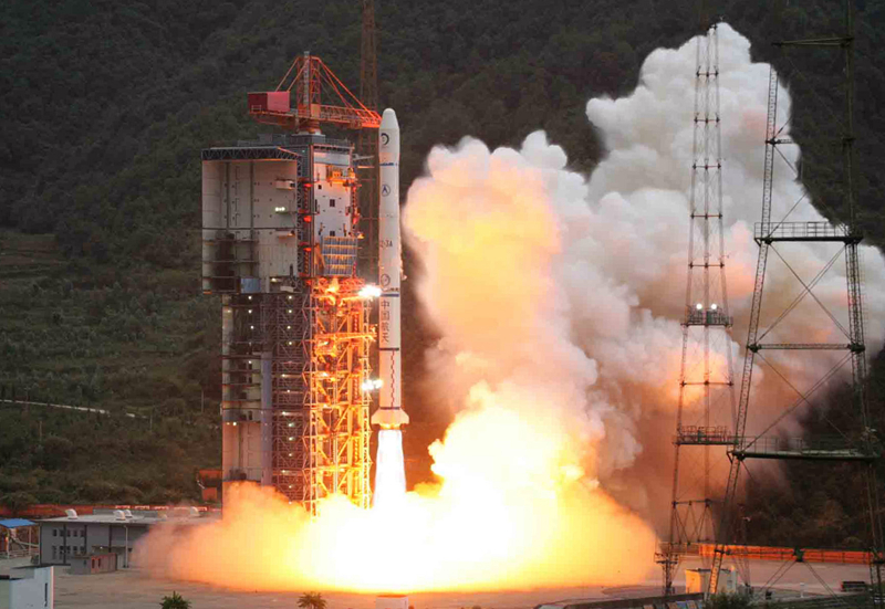 2007年10月24日,搭載著我國首顆探月衛星嫦娥一號的長征三號甲運載火箭在西昌衛星發射中心三號塔架點火發射。