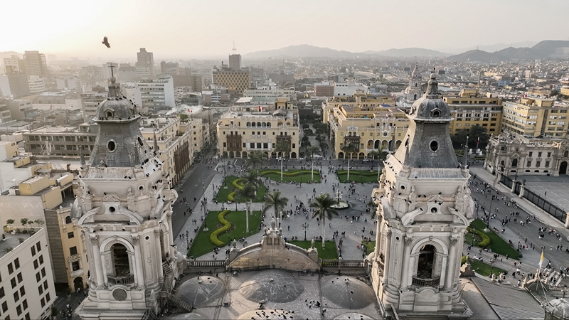 這是10月13日拍攝的秘魯首都利馬武器廣場(chǎng)(無人機(jī)照片)。