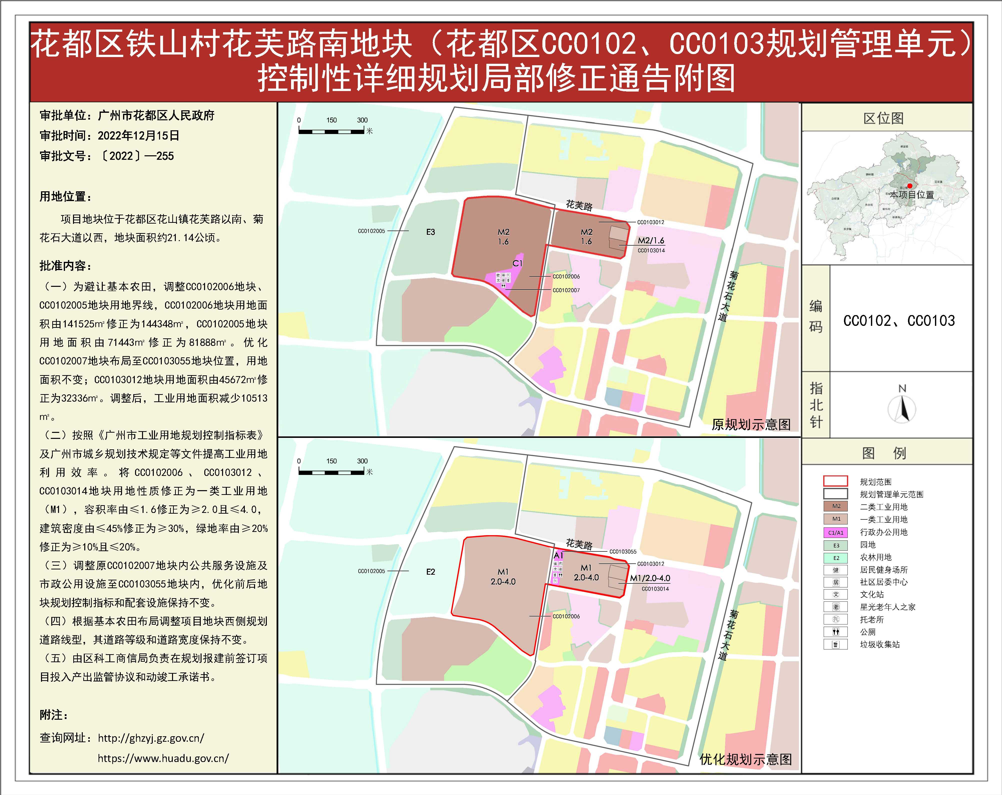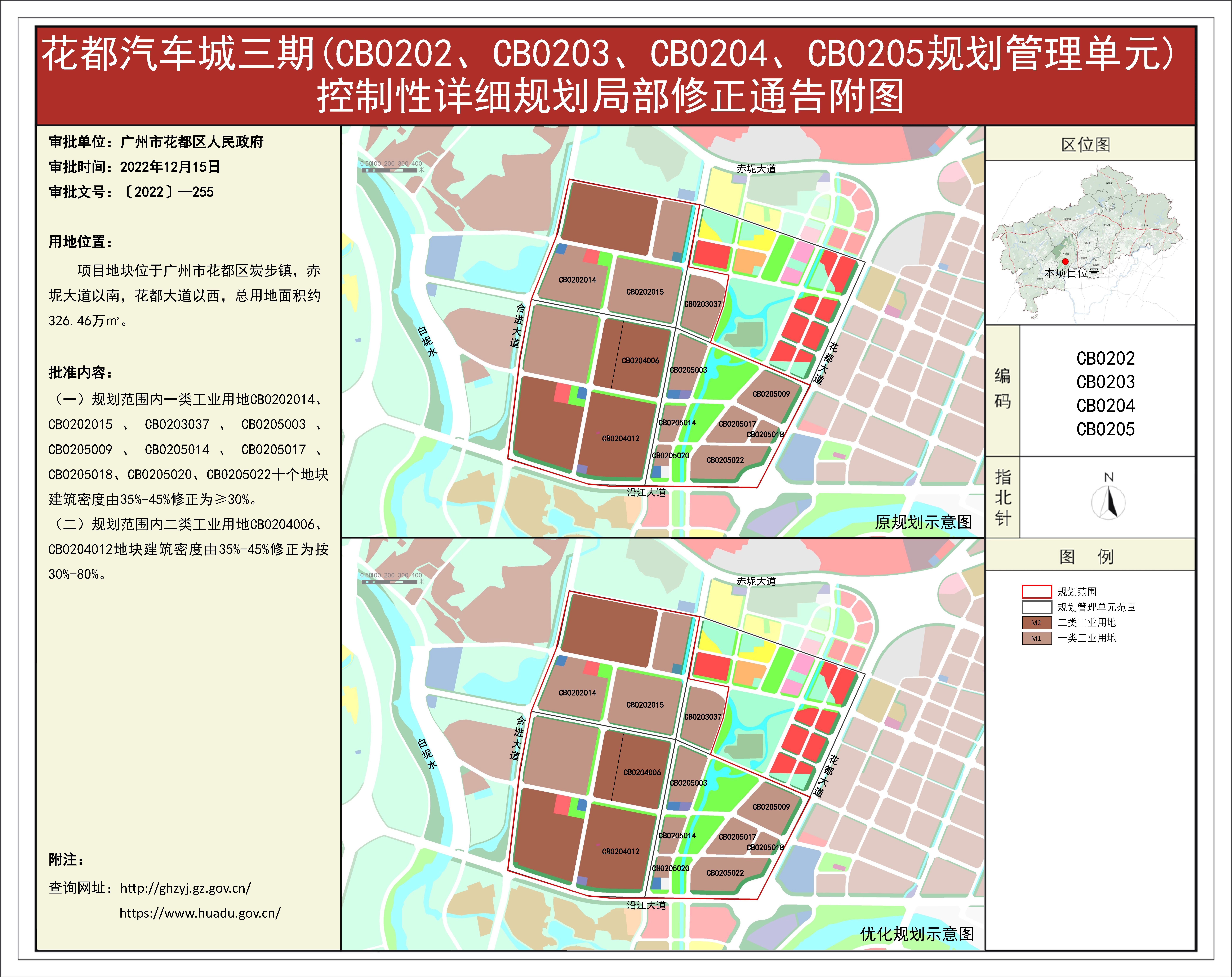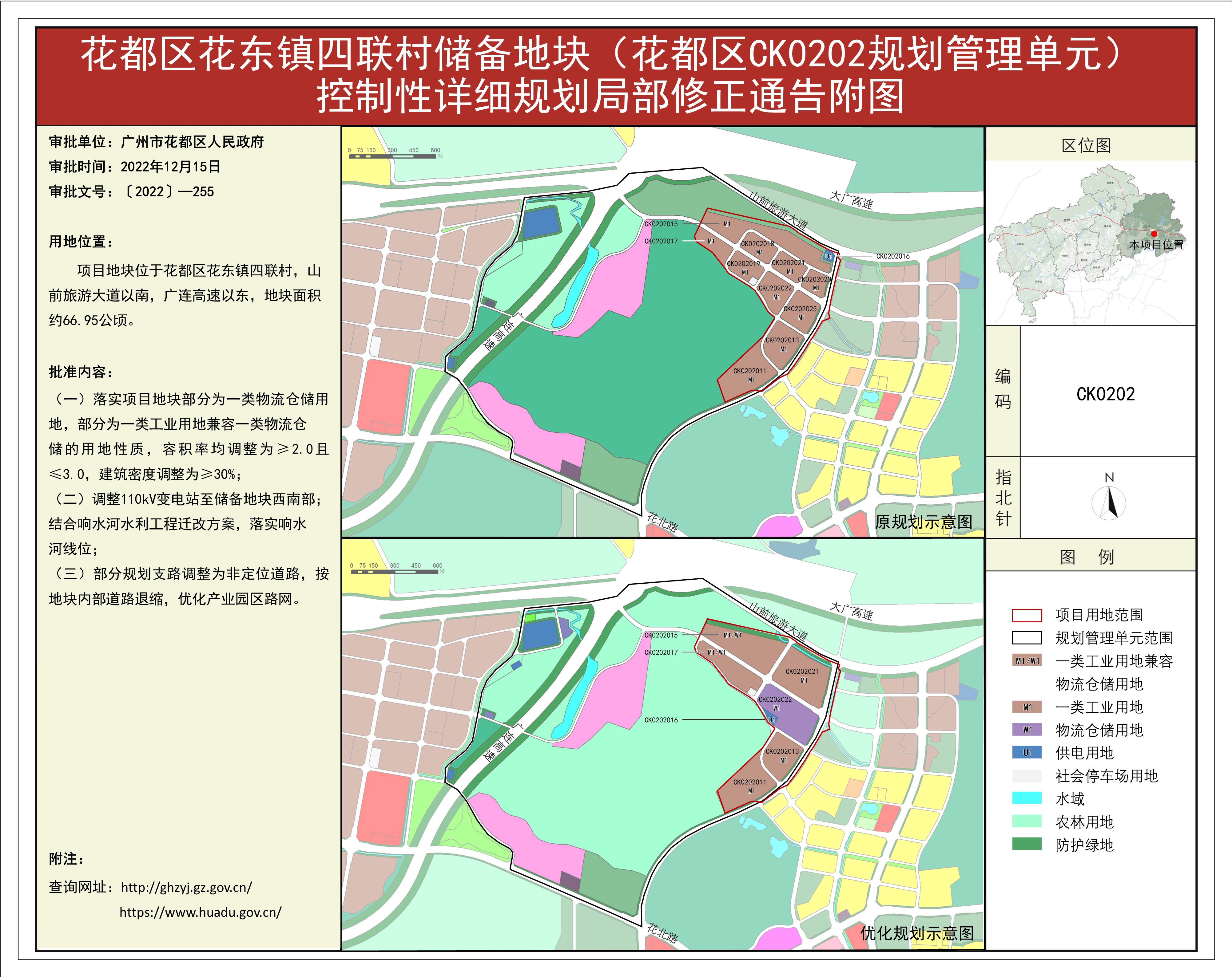 根據《廣東省城市控制性詳細規劃管理條例》的要求,《田美村東南經濟社舊村改造項目、橫潭河西經濟社舊村改造項目控規修正》《廣州風神汽車有限公司花都一工廠、發動機工廠地塊(花都區CB0102規劃管理單元)控制性詳細規劃修正》等62項規劃成果(詳見附件1)已完成批前公示,并經原廣州市花都區城市規劃聯席委員會、現廣州市花都區城市規劃聯席委員會規劃專業委員會審議通過后獲廣州市花都區人民政府(受廣州市人民政府委托)批準(〔2022〕-255),自批準之日(2022年12月15日)起生效。