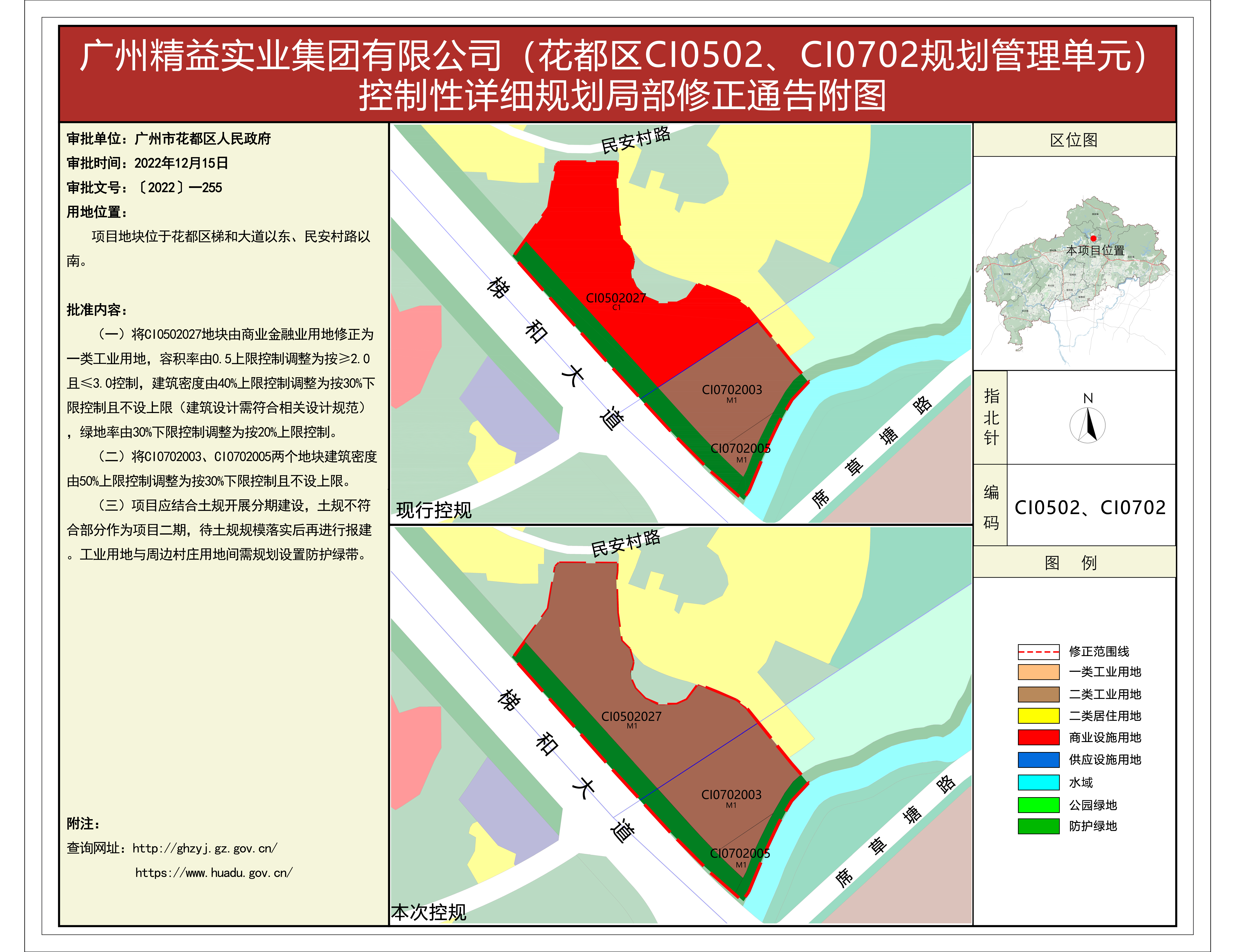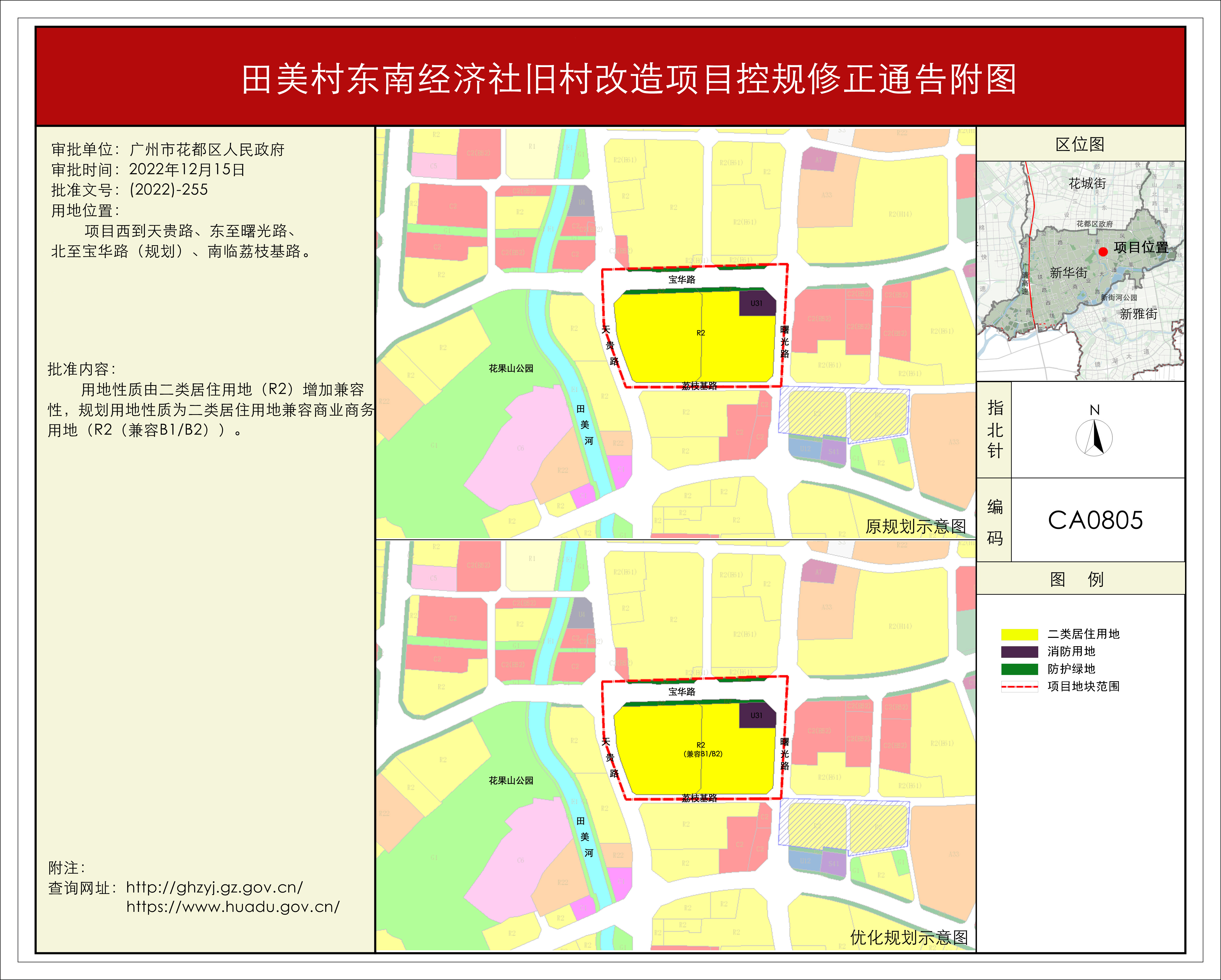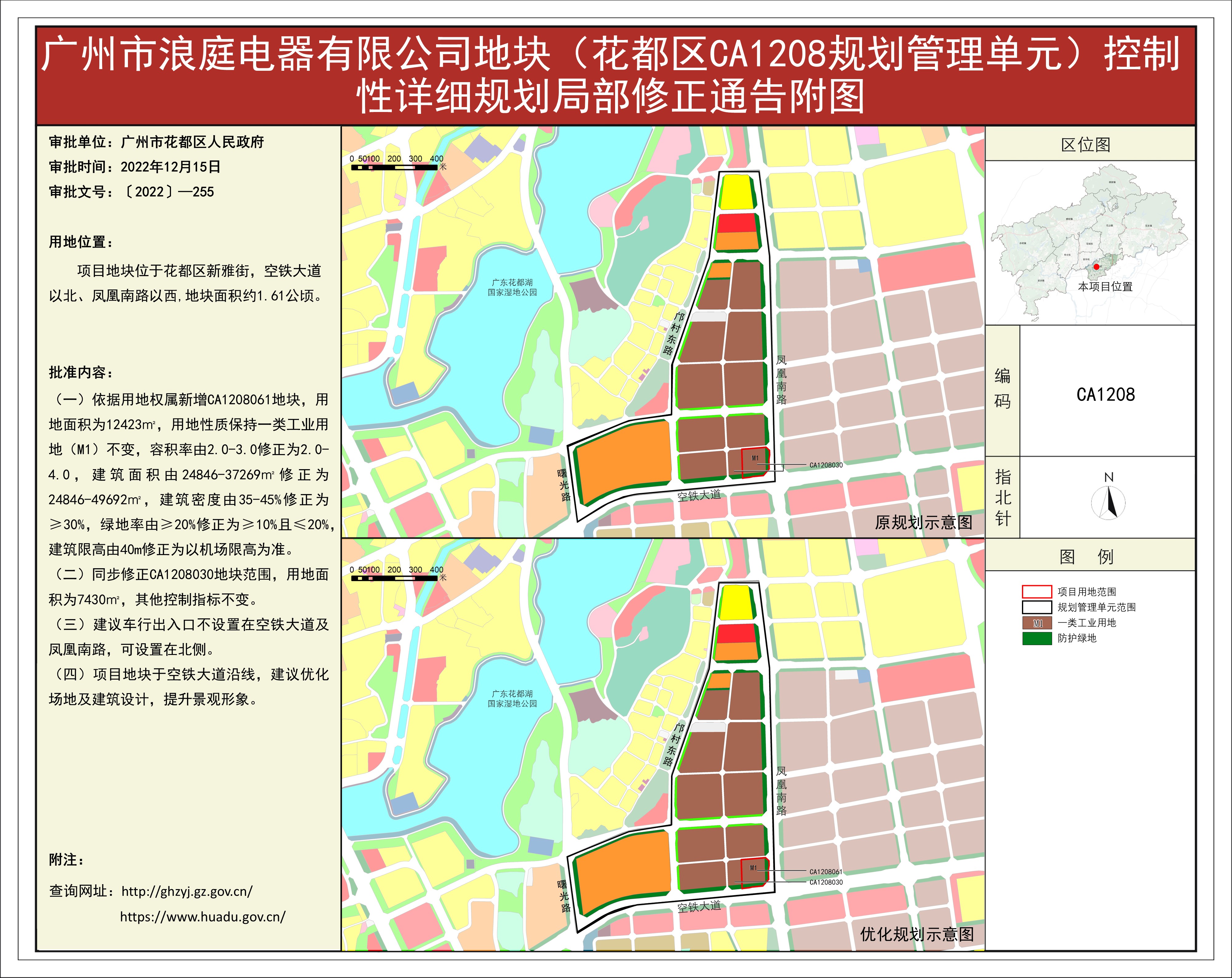 根據《廣東省城市控制性詳細規劃管理條例》的要求,《田美村東南經濟社舊村改造項目、橫潭河西經濟社舊村改造項目控規修正》《廣州風神汽車有限公司花都一工廠、發動機工廠地塊(花都區CB0102規劃管理單元)控制性詳細規劃修正》等62項規劃成果(詳見附件1)已完成批前公示,并經原廣州市花都區城市規劃聯席委員會、現廣州市花都區城市規劃聯席委員會規劃專業委員會審議通過后獲廣州市花都區人民政府(受廣州市人民政府委托)批準(〔2022〕-255),自批準之日(2022年12月15日)起生效。
