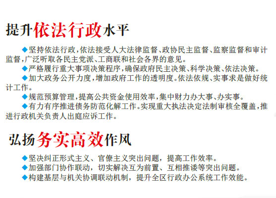 完成既定目標,關鍵在于落實。我們將不忘初心、牢記使命,狠抓落實,努力打造“公平正義、依法行政、務實創(chuàng)新、高效廉潔”的人民政府。