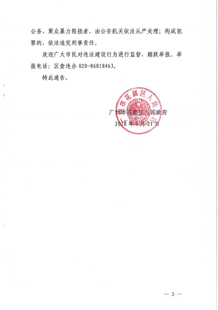 廣州市花都區人民政府關于全面整治違法建設的通告【花府〔2018〕6號】