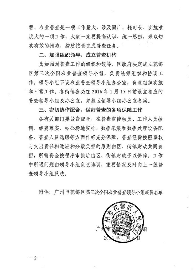 廣州市花都區人民政府轉發廣東省人民政府轉發國務院關于開展第三次全國農業普查的通知 【花府[2016]1號】