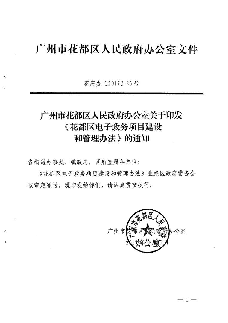 廣州市花都區人民政府辦公室關于印發《花都區電子政務項目建設和管理辦法》的通知【花府辦〔2017〕26號】(已失效)