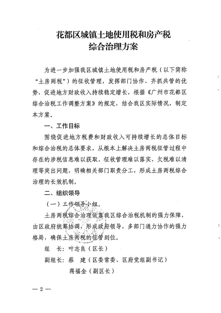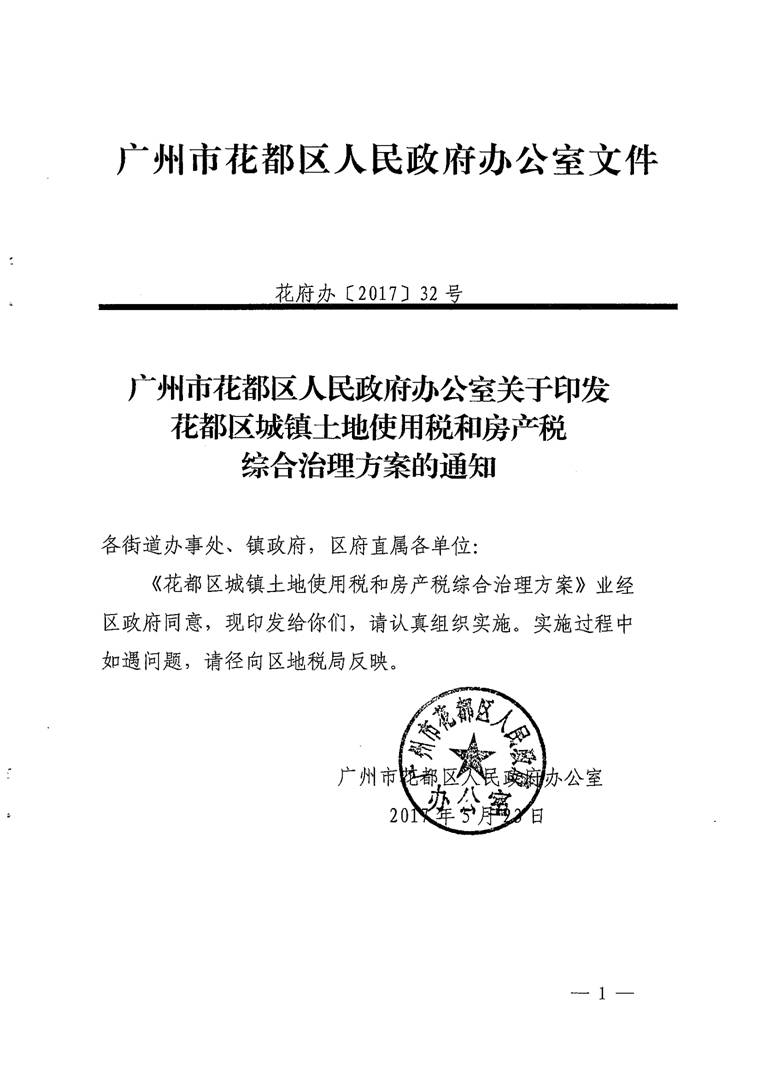 廣州市花都區(qū)人民政府辦公室關(guān)于印發(fā)花都區(qū)城鎮(zhèn)土地使用稅和房產(chǎn)稅綜合治理方案的通知【花府辦〔2017〕32號(hào)】(已失效)