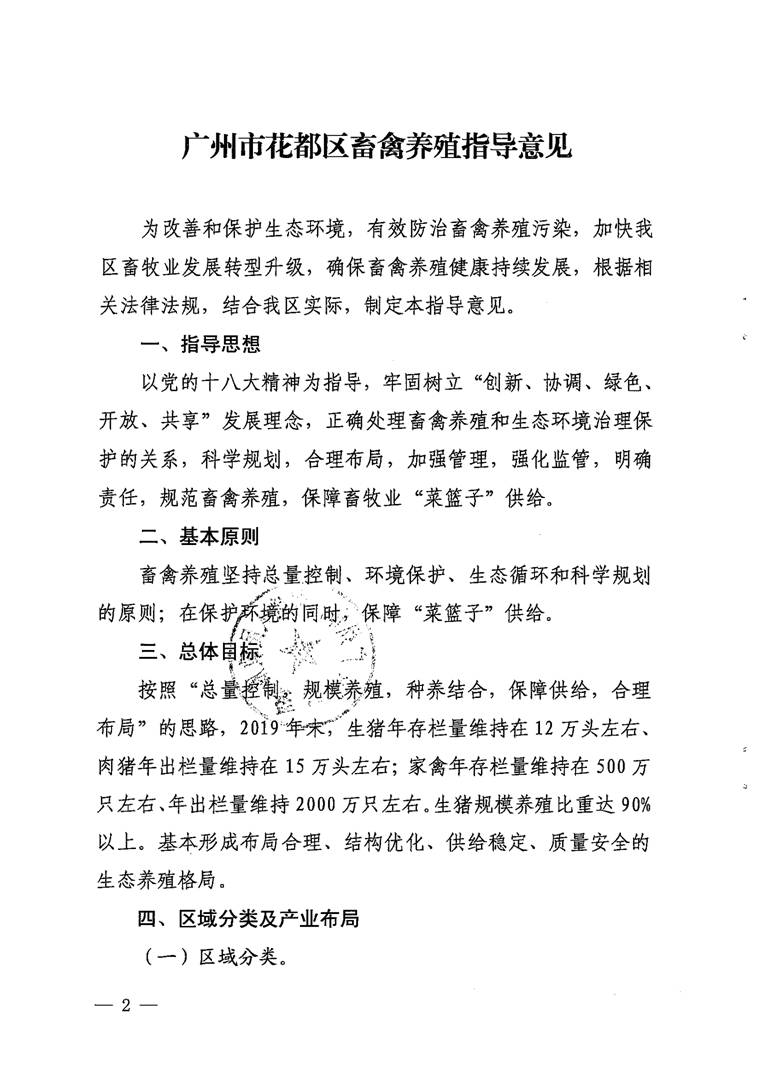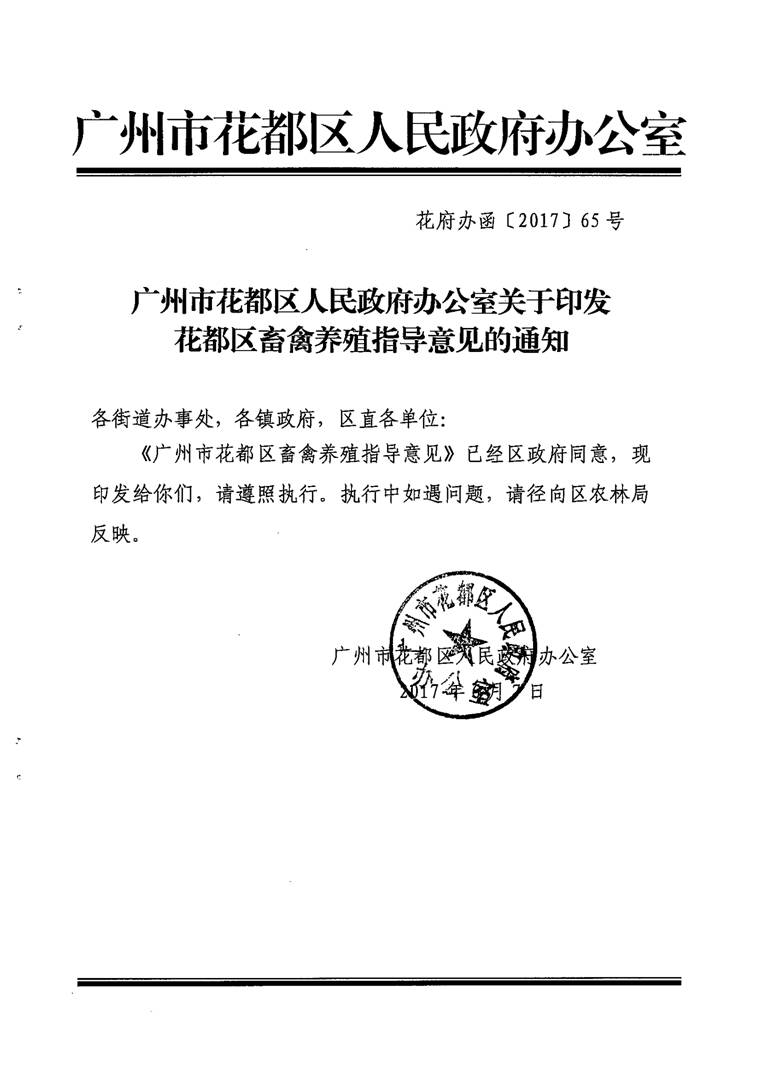 廣州市花都區人民政府辦公室關于印發花都區畜禽養殖指導意見的通知【花府辦函〔2017〕65號】
