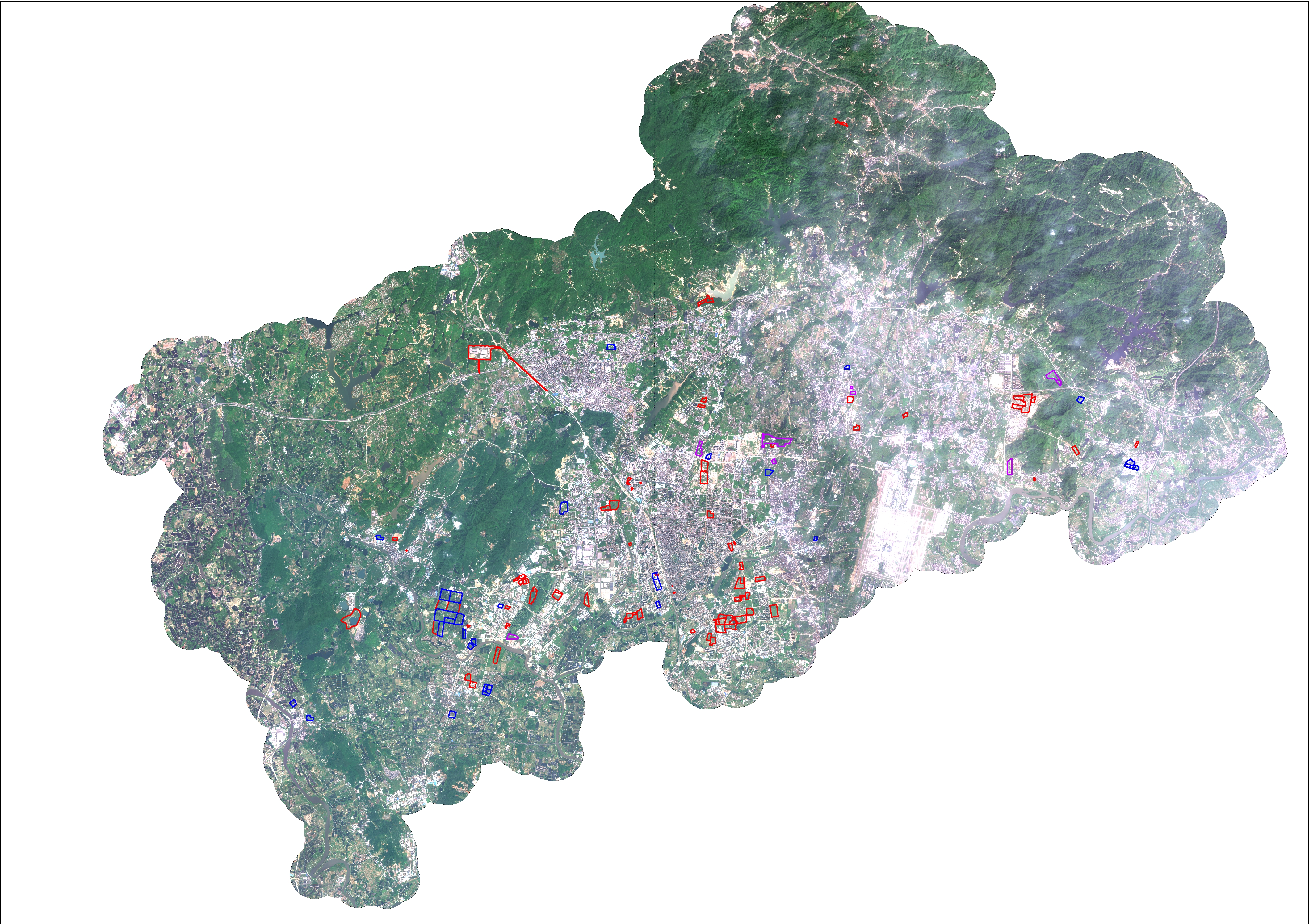 附件:管護(hù)土地位置圖(影像圖紅線部分為已結(jié)案需要巡查的地塊,藍(lán)線與紫線部分為未結(jié)案以后收地再進(jìn)行巡查的地塊).jpg