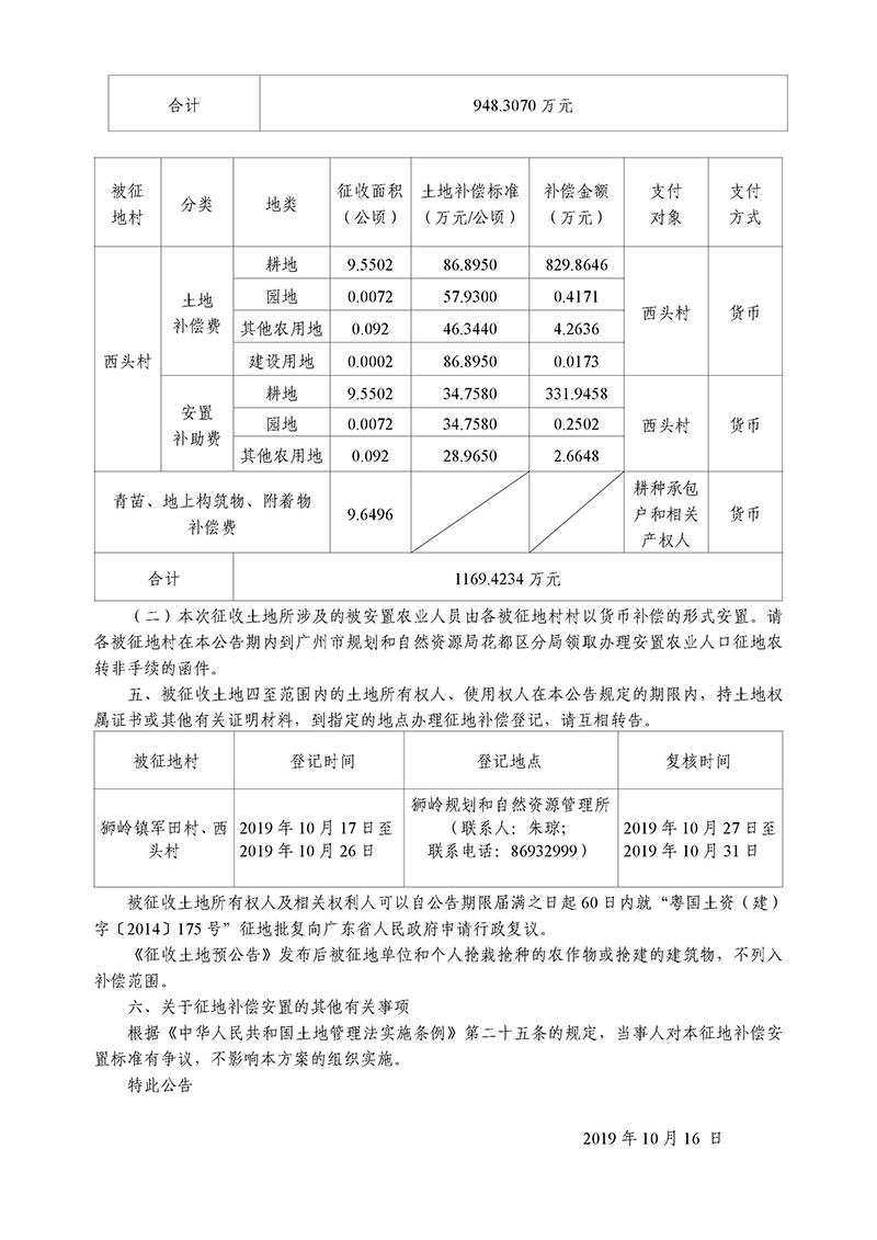 廣州市人民政府征收土地公告--穗府(花)征〔2019〕31號