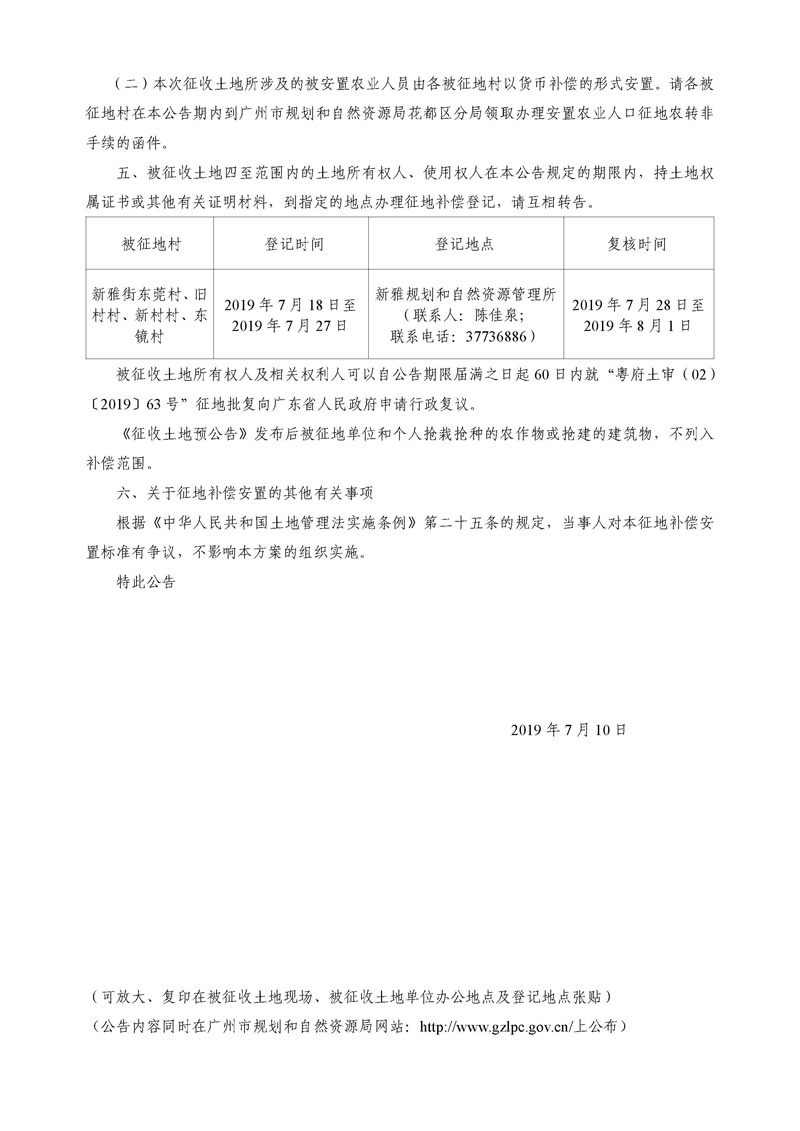 廣州市人民政府征收土地公告--穗府(花)征〔2019〕22號
