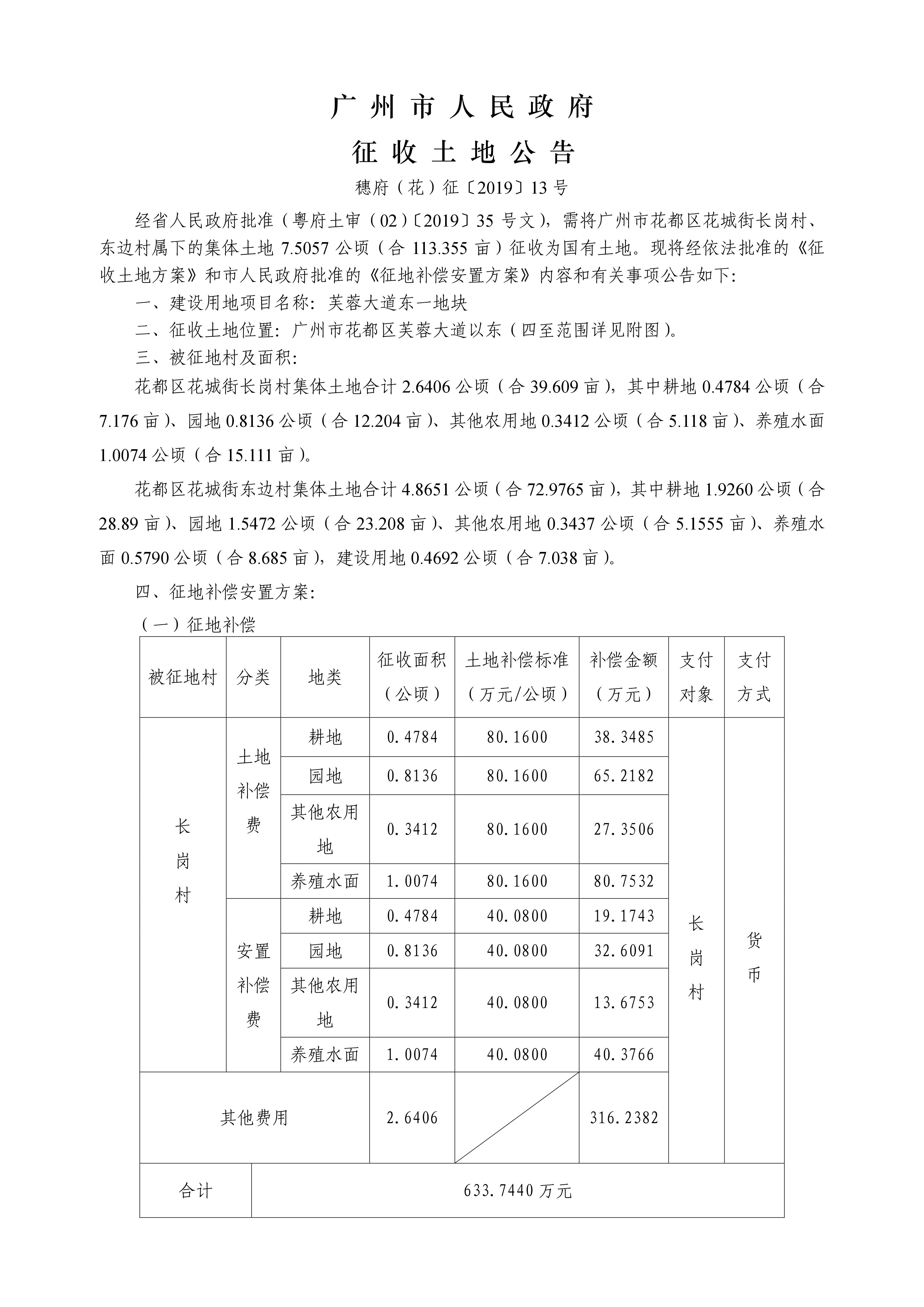 廣州市人民政府征收土地公告--穗府(花)征〔2019〕13號