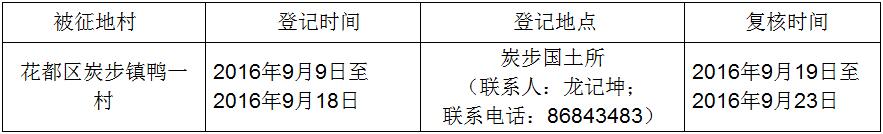 (二)本次征收土地所涉及的被安置農業人員由各被征地村村以貨幣補償的形式安置。請各被征地村在本公告期內到花都區國土房管分局領取辦理安置農業人口征地農轉非手續的函件。