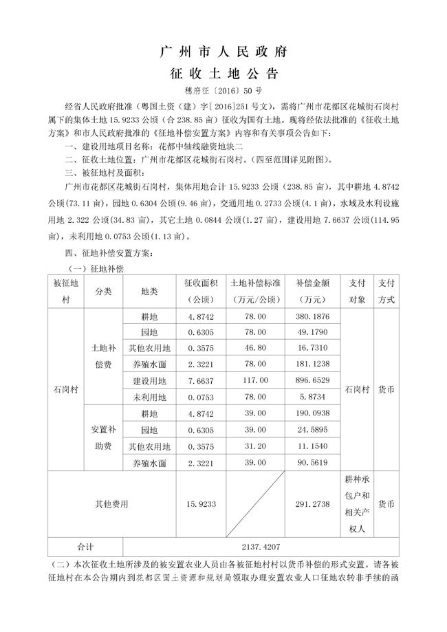 廣州市人民政府征收土地公告——穗府征〔2016〕50號