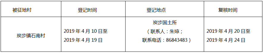 經省人民政府批準(粵國土資(建)字[2018]43號),需將廣州市花都區炭步鎮石南村屬下的集體土地2.9799公頃(合44.6985畝)征收為國有土地。現將經依法批準的《征收土地方案》和市人民政府批準的《征地補償安置方案》內容和有關事項公告如下: